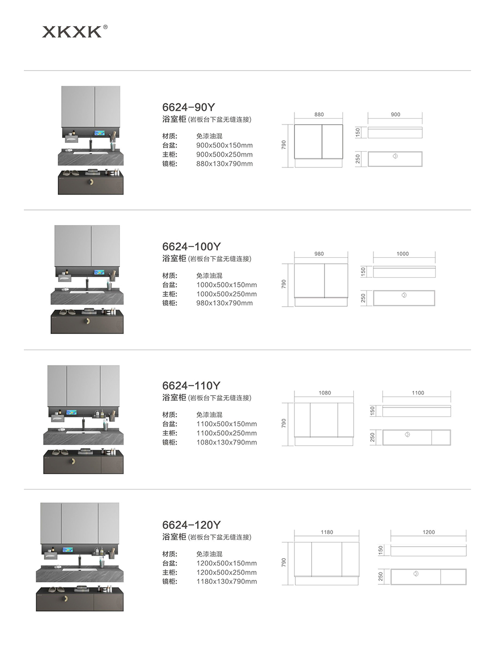 - 主柜:1100x500x250mm 镜柜:1080x130x790mm 台盆:1100x500x150mm